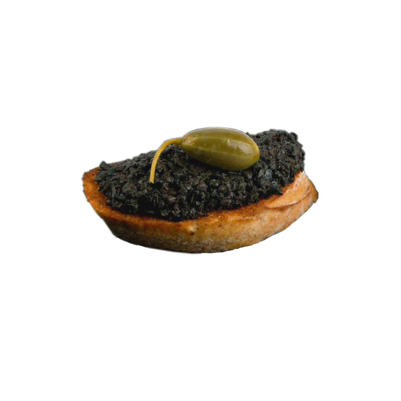 Oliv kalamon (oliver, vatten, havssalt, vinäger, oliv eller solrosolja), landgångsbröd durum/ surdeg (VETEMJÖL, vatten, DURUMVETEMJÖL, RÅGSURDEG, rapsolja, salt, jäst, VETEGLUTEN, mjölbehandlingsmedel (askorbinsyra)), rapsolja, kapris med stjälk (kapris, vatten, vinäger, ättika, salt), olivolja/rapsolja mix (Svensk pressad rapsolja, extra virgin olivolja). Crostini med olivpasta med kapris bär – snitt 49% oliv, 12% kapris.